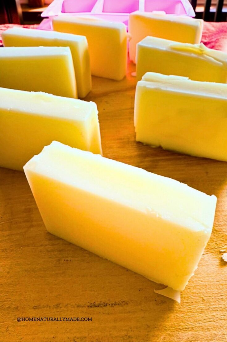 - Leave the soap mixture in the molds overnight. The following day, remove the soap bar from the molds and then let it cure on a rack. The curing process takes 4-6 weeks.