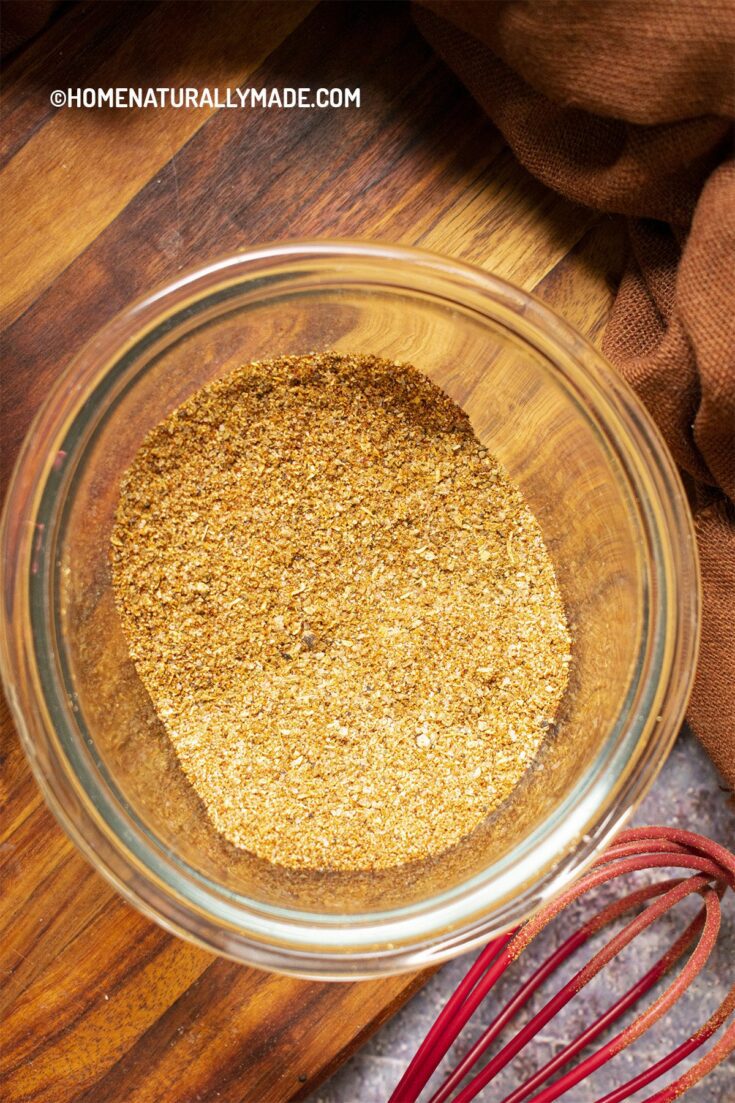 All you need is cumin, paprika, black pepper, coriander seeds, garlic powder and salt. I usually buy the whole some organic cumin, black pepper and coriander seeds and then use a spice grinder to grind into fresh spice powder.